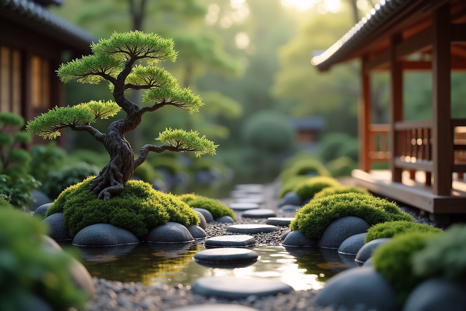 Jeder Miniatur-Japanische Garten lebt von seinen sorgfältig ausgewählten Komponenten. Hier sind die Schlüsselelemente, die du berücksichtigen solltest: